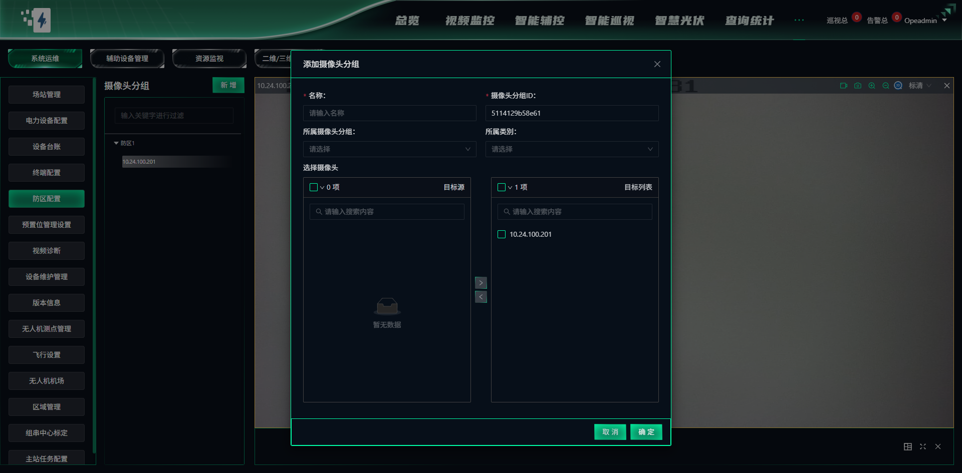 进入辅助设备管理--设备配置/动环配置页面找到要绑定摄像头的设备,比如门禁 再点击绑定摄像头 选择要绑定的摄像头及预置位,点击绑定按钮