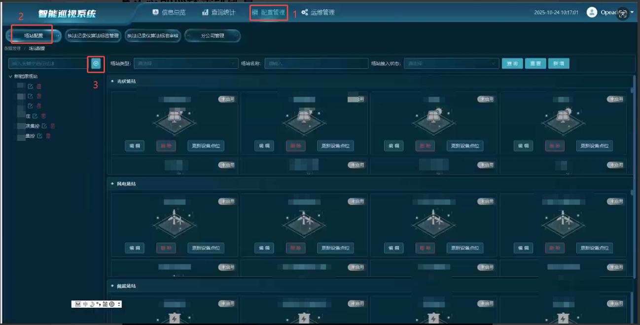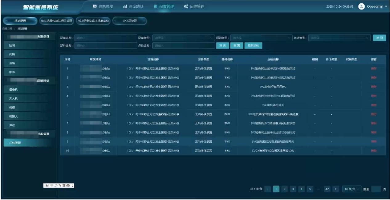 3)鼠标点击图中“红框”标识位置,进入场站详细信息页面,选择“点位管理”子菜单,即可看到从数字化运维系统中同步的巡检项