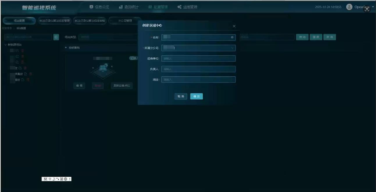 1)创建区域中心,登录总部系统:https://172.23.35.29 用户名: opeadmin 密码:Idea@123 进入场站管理,点击“加号”按钮,输入“名称”和“所属分公司”点击保存。