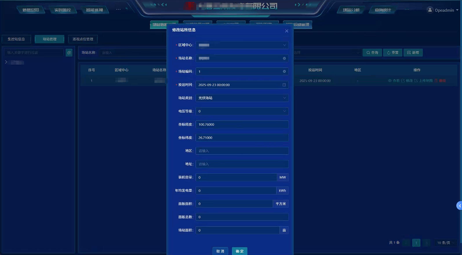 运维管理--场站管理--修改--输入坐标经度和坐标纬度